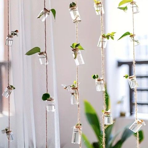 Estación de propagación para colgar en la pared con soporte de madera, tubos de ensayo de vidrio para el hogar, oficina, colgador de plantas, macetas escalonadas, Terrario de pared